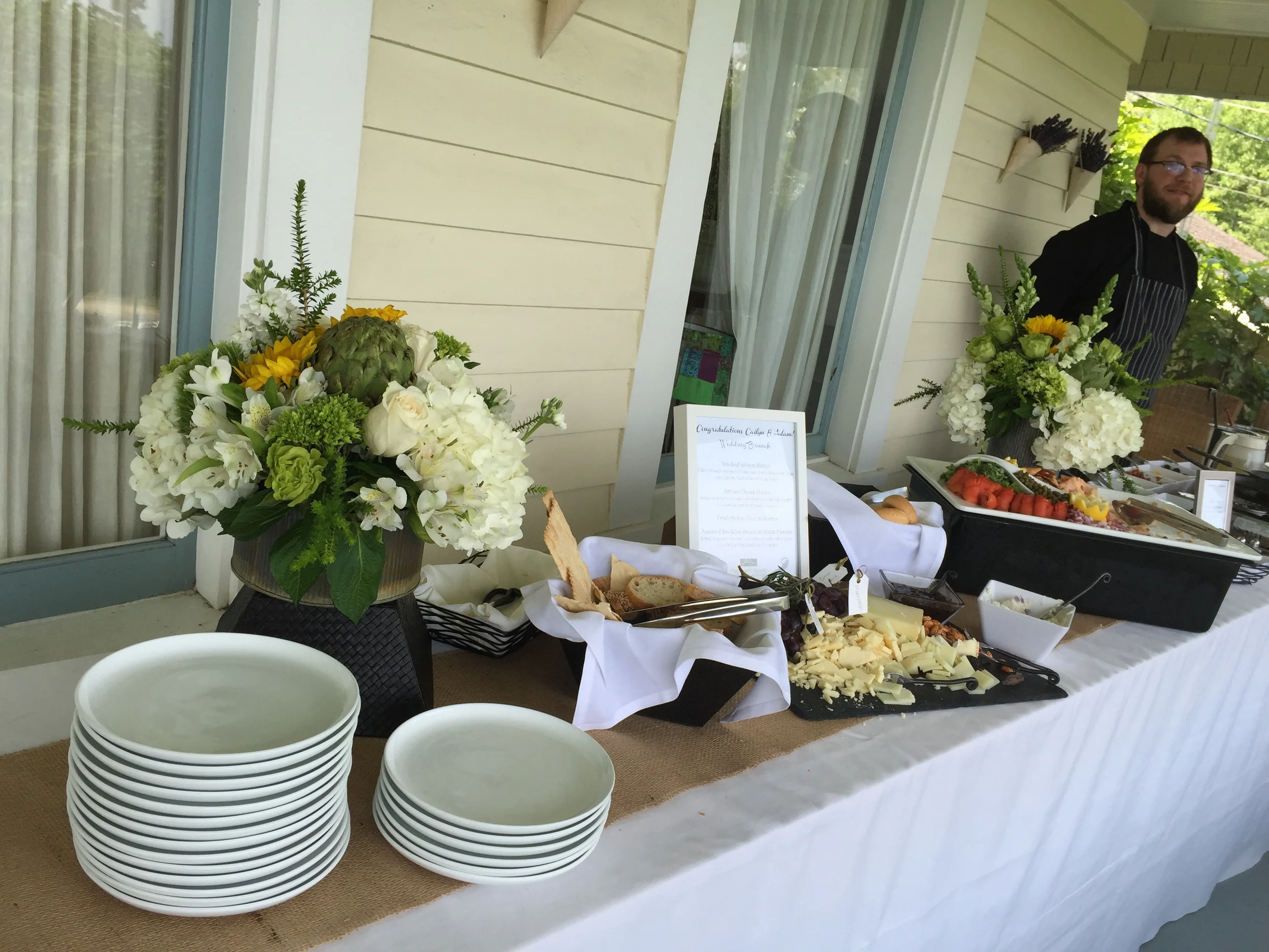 Caterers will have use of a large carport, with power and lights. Smaller events may use the kitchen with owner’s permission. Acoustic music or light amplification permitted. As a courtesy to our neighbors, we require receptions and parties be over by 9 p.m. with cleanup over by 10 pm.